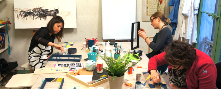 Chaque participant a créé son propre plateau graphique en s’inspirant des tendances actuelles. Cet atelier a été l’occasion pour tous d’apprendre les principes de base de la peinture sur bois, d’utiliser du scotch de masquage (ou masking tape) et de travailler sa créativité.