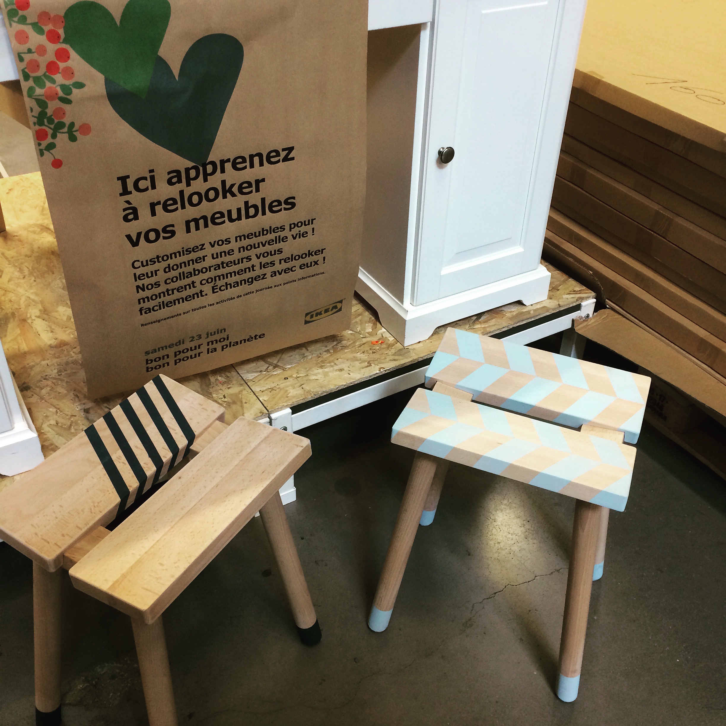 À l’occasion de Midsommar, la fête suédoise qui célèbre le solstice d’été, on a été convié à présenter notre travail dans le magasin IKEA La Valentine. L’occasion pour les clients de découvrir notre travail et plus particulièrement les étapes de base d’un relooking de meuble.