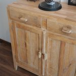 Pour cette commode nous avons décapé deux couches de peinture, poncé et verni l’ensemble. Les traverses ont été réparées et renforcées. L’intérieur des tiroirs a été peint en blanc ivoire pour un fini plus élégant.